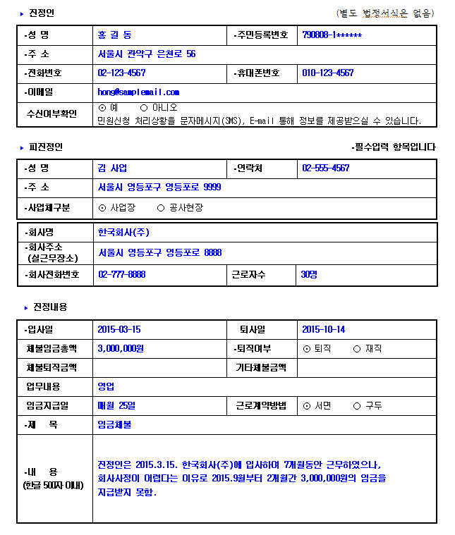 ⭕ 진정인 인적사항 (이름, 연락처, 주소)