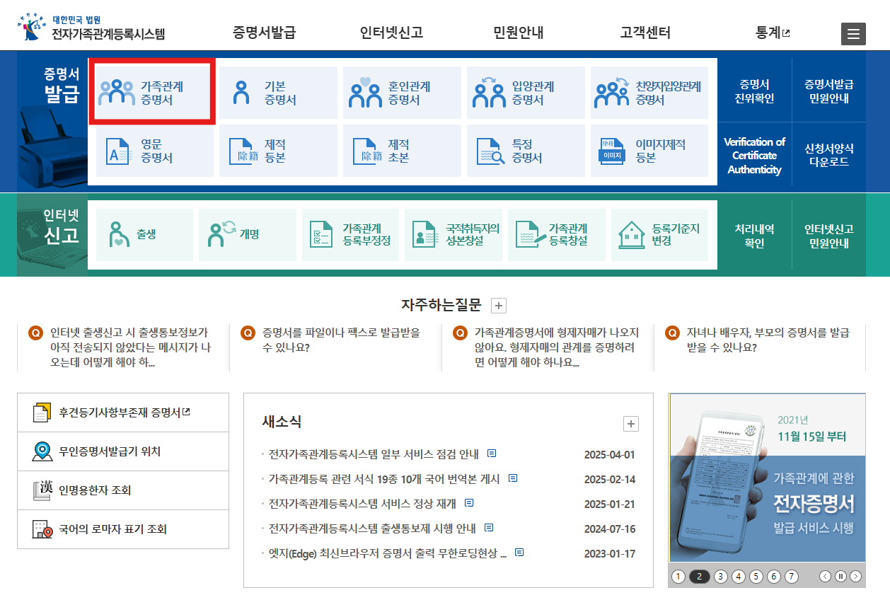 📍 가족관계 확인 또는 주민등록 요건 증명