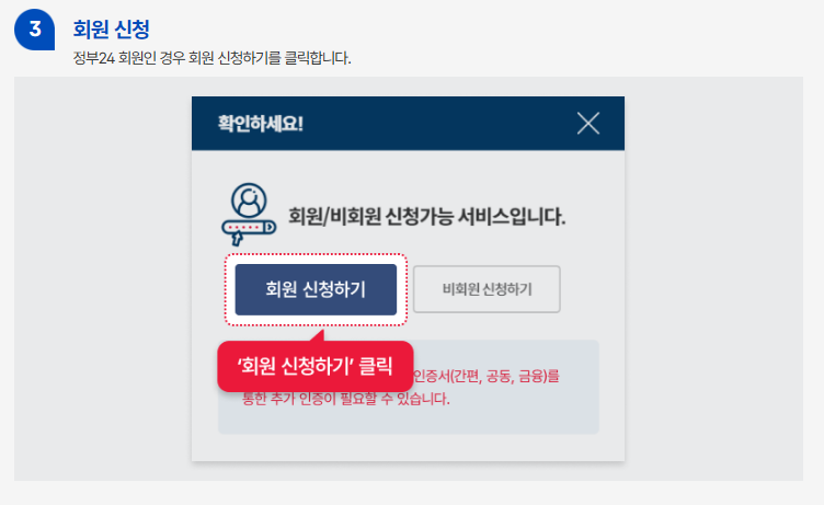 정부24 모바일 발급을 위해선 본인 확인 절차가 반드시 필요합니다.