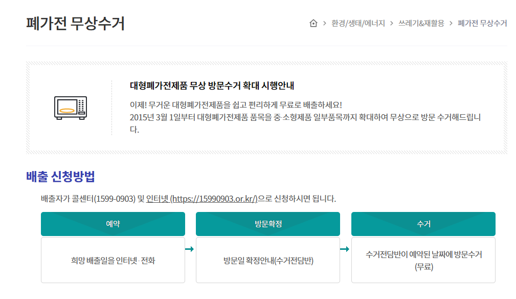 📍 환경부 폐가전 무상 수거 공식 홈페이지 접속