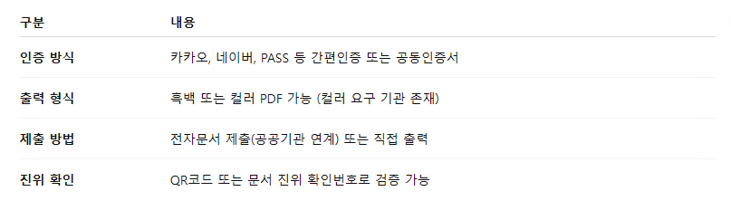 특히 모바일에서는 카카오, 네이버 인증서를 통해 빠르게 인증할 수 있어, 자주 이용하는 경우 모바일 발급이 더욱 편리합니다.