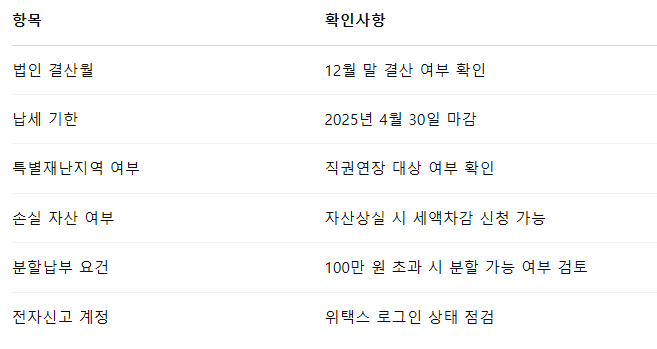 ✅ 납부세액이 100만 원 초과하는 법인