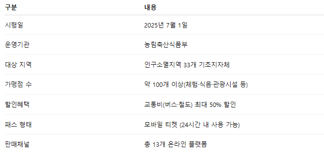 ✅ 2025년 농촌투어패스 주요 특징