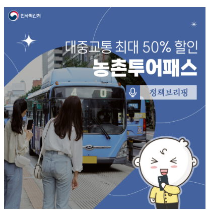 도시민이 농촌을 방문할 때 대중교통을 이용하면 교통비를 절감할 수 있도록 지원하고, 현지 제휴된 체험·관광·식음시설에서 모바일 패스를 통해 다양한 할인 및 혜택을 제공받는 제도입니다.