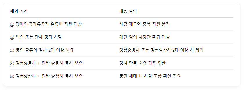 ③ 동일 종류의 경차 2대 이상 보유 / 경형승용차 또는 경형승합차 2대 이상 시 제외