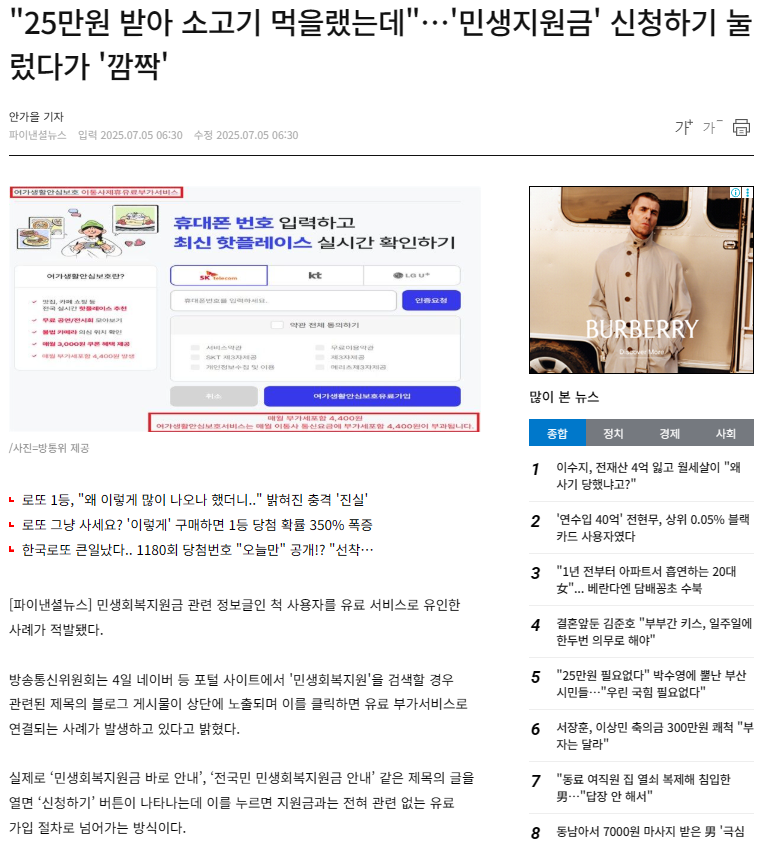 특히 검색 포털을 통해 보이는 ‘신청하기’ 링크를 무심코 누를 경우, 전혀 무관한 유료 부가서비스에 자동 가입되는 사례가 속출하고 있습니다.