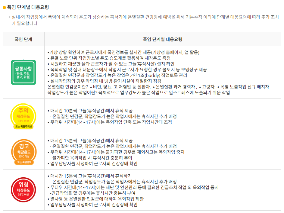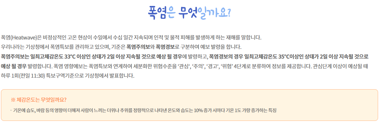 일최고체감온도 35℃ 이상인 상태가 2일 이상 지속될 것으로 예상될 때