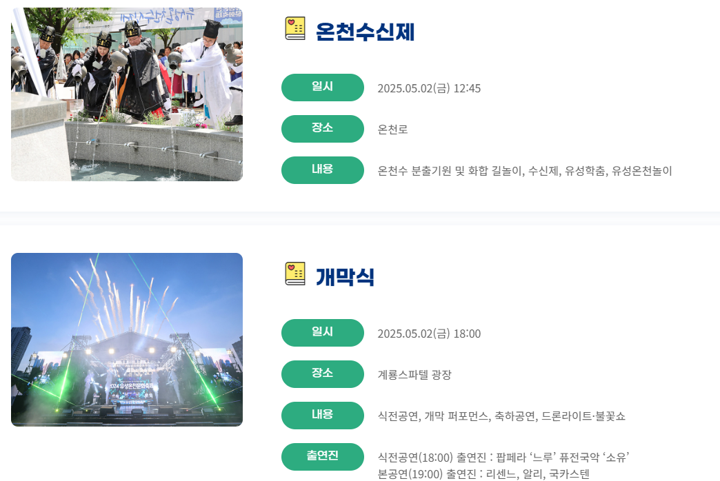 대전 유성구 일원에서 열리는 이 축제는 가족 단위 나들이객, 커플 여행객, 지역 주민 모두가 함께 즐길 수 있는 도심 속 온천문화 축제로 자리 잡고 있습니다.